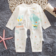 婴儿开档连体衣夏季新生儿衣服开裆哈衣爬服宝宝夏装长袖纯棉薄款