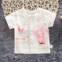 婴儿短袖上衣夏季新生儿宝宝半袖内衣单件上衣开胸衫0-1岁纯棉薄