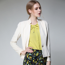 芮玛正品2017春装新款 修身雪纺小西装九分袖拼接透视薄款外套