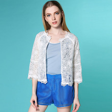芮玛17春夏新款 名媛小香风七分袖蕾丝百搭薄款女上衣外搭短外套