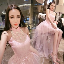 yy网络直播服装女主播上镜衣服气质项链 抹胸简约 挂脖露背燕尾裙
