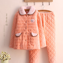品质三层加厚夹棉睡衣女式睡衣翻领高档可爱休闲家居服棉袄新品