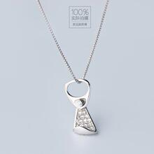 韩国S925纯银满钻锆石易拉罐口拉环项链简约锁骨短链吊坠女士饰品