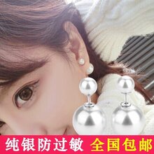 925纯银双面珍珠耳钉耳环韩国气质时尚前后大小日韩耳饰女防过敏