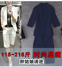大码女装胖mm200斤夏装2017新款棉麻西装五分裤子胖妹妹显瘦套装