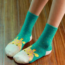 3双包邮袜子中性男女可爱卡通动物全棉冬袜创意提花中筒棉袜潮袜