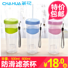 包邮 茶花塑料正品 防滑密封茶杯旅行杯随手杯水杯子带绳滤网1484