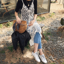 春夏新款韩版甜美外穿镂空蕾丝吊带罩衫中长款百搭连衣裙罩裙女