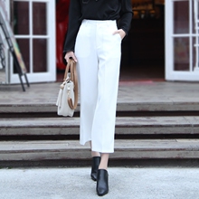 2017春夏新款韩版学院风直筒高腰阔腿裤显瘦阔脚西装九分裤女潮