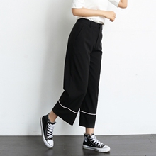 春夏新款韩版复古高腰直通裤九分裤女 百搭镶白边弹力七分休闲裤