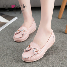 千佰莉2017春季新款女鞋 牛皮低跟圆头平底舒适软底单鞋豆豆鞋