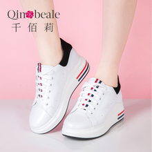 千佰莉2017春新款单鞋 牛皮厚底内增高小白鞋女鞋休闲鞋运动风鞋