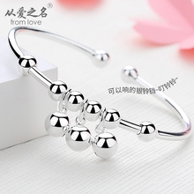 会响铃铛999纯银手镯女开口简约韩镯子学生闺蜜清新百搭礼物