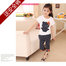 女童套装夏款套装 短袖T恤七分裤短裤套装 女童t恤短袖短裤套装