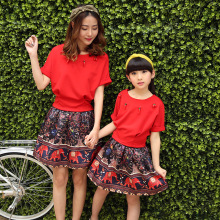 亲子装夏装2017新款韩版女童中大童短袖卡通裙两件套夏季母女装潮
