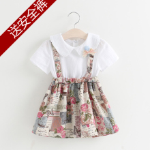 童装2016夏棉麻透气碎花裙文艺圆领裙背带裙短袖裙淑女裙清新裙子