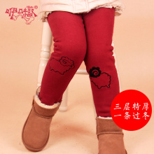 女童裤三层加绒加厚打底裤女宝宝冬款加绒棉裤儿童冬款保暖裤