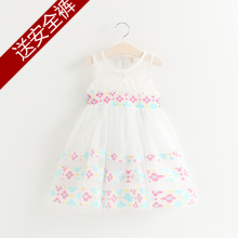 2016夏季新款女童透气连衣裙无袖时尚碎花裙蕾丝网纱女孩公主裙