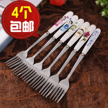 韩式陶瓷不锈钢一家四口筷子 骨瓷柄可爱卡通亲子中餐 日式筷子