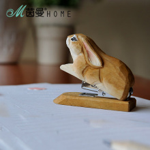 茵曼home创意手工饰品实木雕刻订书机木雕摆件椴木新年礼物