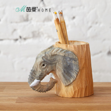 茵曼home现代简约家居饰品雕刻礼物实木木雕摆件大象笔筒