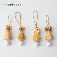 实木手工木雕摆件创意礼物客厅摆件鹿铃铛车挂件装饰家居饰品工艺