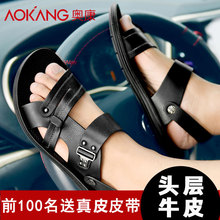 奥康男鞋男士凉鞋真皮沙滩鞋夏季罗马休闲鞋防滑耐磨韩版两穿凉拖