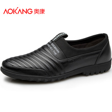 奥康男鞋新款男士鞋韩版潮流男式头层牛皮休闲皮鞋低帮套脚鞋子男