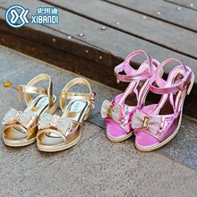 史班迪2017夏季新款女童凉鞋公主金色粉色鱼嘴童鞋水钻儿童凉鞋潮