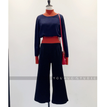[浅爱]2016秋冬新款圆领撞色拼接贴布装饰打底针织线衫女F0036