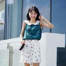 原创自制文艺日系撞色海军风娃娃领无袖宽松显瘦背心女A字上衣
