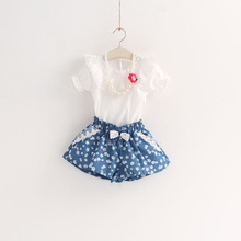 童装女童短袖套装2017新品韩版夏季儿童花边T恤碎花短裤两件套