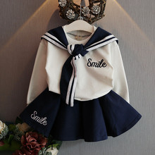女童套装2017新款儿童秋装休闲海军学院风卫衣+短裙校服两件套