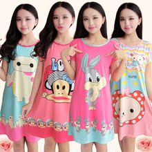 睡衣女夏卡通短袖牛奶丝可爱少女连体裙睡裙女士休闲家居服包邮