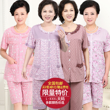 中老年睡衣女士纯棉质休闲宽松妈妈短袖加肥加大码套装老人家居服