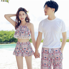 情侣泳衣温泉女士三件套比基尼四件套泳装显瘦保守分体沙滩裤套装