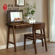 治木工坊 纯实木梳妆台 白橡木化妆桌 日式日系带梳妆镜组合妆桌