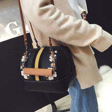 韩国金泫雅同款刺绣女包水桶包链条手提单肩包2017新款斜挎包小包