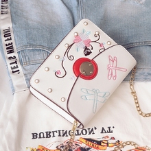 包包女2017新款潮韩版百搭斜挎包简约刺绣夏季链条小方包单肩小包