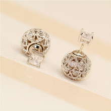 气质微镶满钻纯银针耳钉女双面前后奢华超闪水钻耳环时尚百搭耳饰