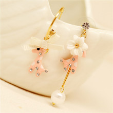 韩版可爱花朵蝴蝶结水钻不对称耳钉超萌卡通小鹿珍珠长款耳环耳坠