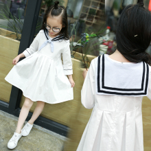 2017女童童装中大童春装新款白色海军风长袖连衣裙韩版公主裙子潮