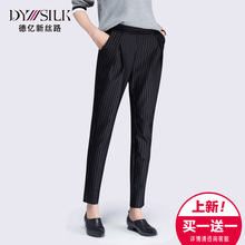 德亿新丝路哈伦裤女2017春款竖条纹休闲裤宽松弹力九分裤萝卜裤薄