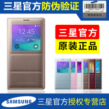 三星note4手机壳原装皮套智能开窗休眠翻盖插卡式保护套外壳韩国