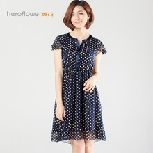 英花夏真丝连衣裙V领拼接加肥加大码圆点显瘦荷叶边桑蚕丝连衣裙