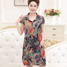 中老年人女装真丝香云纱连衣裙新款清仓妈妈装夏装短袖中长款裙子