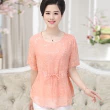 中年女士夏季短袖上衣雪纺 大码妈妈装小衫母亲节中老年人夏装T恤