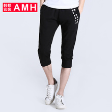 AMH韩都衣舍男装2017夏裤子 潮男韩版黑色运动休闲裤七分裤PL5094