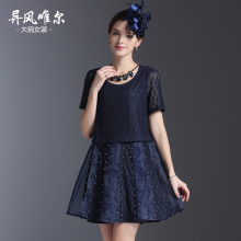 大码女装夏装新款胖妹妹200斤修身显瘦打底衫胖mm假两件连衣裙夏
