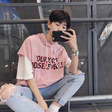 韩版潮流原宿风bf宽松连帽七分短袖t恤男夏港风小清新学生上衣服